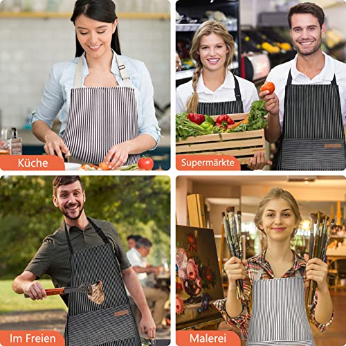DEATPOYE Kitchen Apron Women, 3 Pack Cooking Apron for Women Men Kitchen Apron Adjustable Kitchen Apron Made of Cotton Linen with 2 Pockets for Chef for Kitchen Restaurant Café Garden