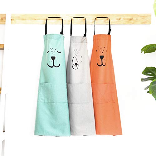 Specification: Lindong Cute Cartoon Apron with Pocket for Women Children Waterproof Cotton Linen Kitchen Apron Bib Apron Cooking Apron Children Green