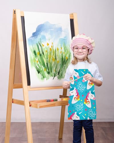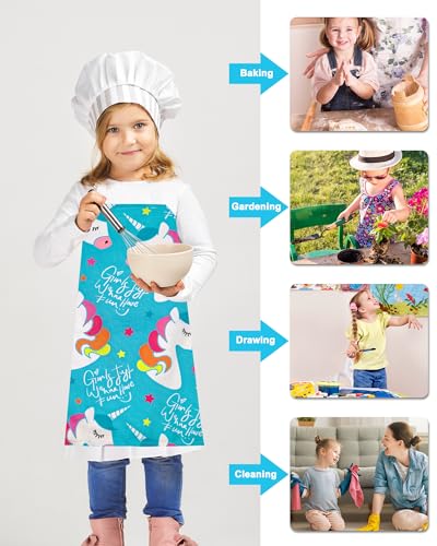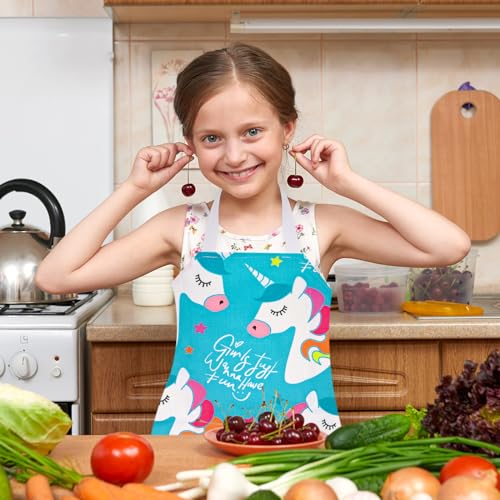 XonyiCos 2 Pack Kids Boys Dinosaur Aprons, Girls Unicorn Apron for Cooking Painting Chef Cartoon Apron for Children 3-12 Years
